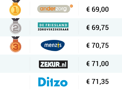 Het vergelijken van de zorgverzekering 2016 kan nog twee dagen. Daarna kun je jouw huidige zorgverzekering niet meer opzeggen. We zetten de goedkoopste zorgverzekeringen gemakshalve nog even voor je op een rij. Met een standaard eigen risico betaal je bij jongerenlabel Zekur € 86,00, met Univé (€86,95) als nummer twee. Het verschil loopt op tot € 263,4 per jaar. De moeite van het vergelijken waard.