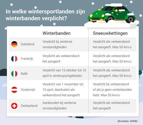 Maak je een ongeluk zonder winterbanden of sneeuwkettingen in bijvoorbeeld Duitsland of Oostenrijk, dan vergoed je verzekering de schade. De plaatselijke politie geeft je waarschijnlijk wel een boete voor het rijden zonder winterbanden. Deze boete is uiteraard niet te verhalen op je autoverzekering.