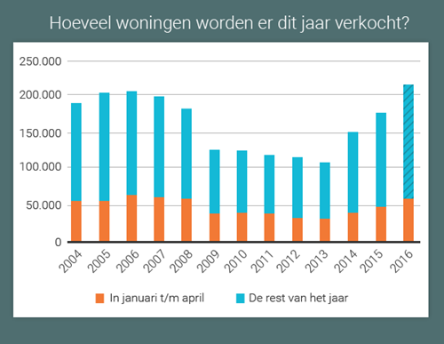 Het CBS en het Kadaster presenteren iedere maand de cijfers over de huizenprijzen en woningverkopen van de maand ervoor. In dit geval dus over april 2016. Goed nieuws wat betreft de woningprijzen én het aantal verkopen.
