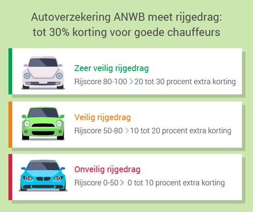 Korting voor een veilige rijstijl, geen verkeerd idee. Heb je interesse in zo'n autoverzekering? Vergeet dan niet om zowel de voorwaarden als de premie (met én zonder korting) ook eens met andere verzekeraars te vergelijken. Want ANWB is doorgaans niet de goedkoopste.
