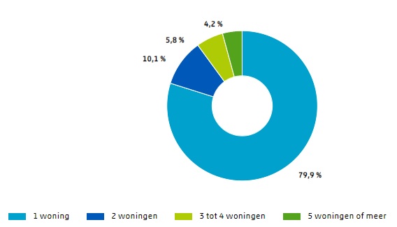 De meeste (80%) verhuurders hebben naast hun eigen huis één extra woning. Circa 10 procent verhuurt twee woningen. Slechts een kleine minderheid bezit vijf of meer woningen. De cijfers maken duidelijk dat het vooral om particulieren gaat die zelf een bedrag achter de hand hebben en een alternatief zoeken voor slecht renderende spaarrekeningen.