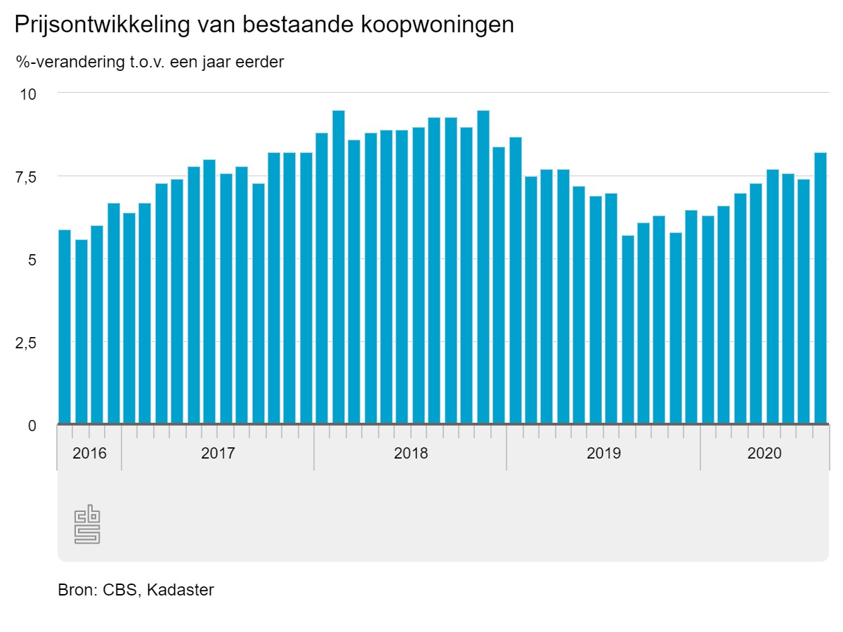In het tweede kwartaal stonden er 33.554 woningen te koop bij NVM-makelaars. Een min van 22,9 procent ten opzichte van een jaar eerder. Het relatief beperkte aanbod aan koopwoningen zorgt ervoor dat de prijzen op niveau blijven, ondanks de coronacrisis. Het kabinet heeft op Prinsjesdag verschillende maatregelen aangekondigd om de bouw van nieuwe woningen te stimuleren. Het is niet aannemelijk dat deze maatregelen een structurele oplossing voor het woningtekort bieden. Met een aanhoudend tekort aan woningen zal de coronacrisis geen grote prijsdaling tot gevolg hebben, zo is de verwachting.