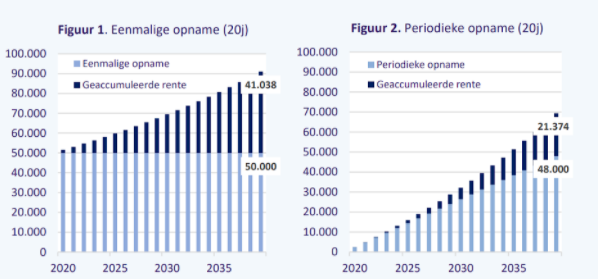 Pas je wensen aan op je hypotheek. Wil je een aanvulling op je pensioen? Dan is een periodieke uitbetaling van de overwaarde interessanter dan één groot bedrag. De manier waarop de overwaarde aan je wordt uitgekeerd, bepaalt voor een deel hoe snel de restschuld oploopt. Een periodieke uitbetaling is financieel gunstiger, zoals blijkt uit de onderstaande AFM-illustratie.