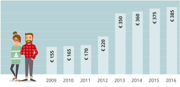 De €385 die je ook volgend jaar maximaal betaalt aan eigen risico is sinds 2016 niet meer gewijzigd. In de jaren daarvoor werd de bijdrage aan zorg wel jaarlijks verhoogd. In verhouding tot 2009 betaal je nu meer dan het dubbele.